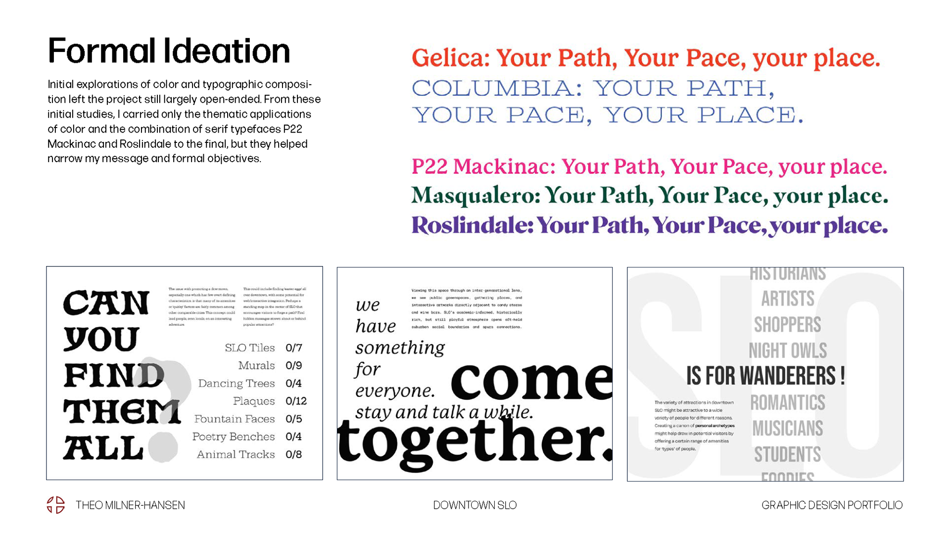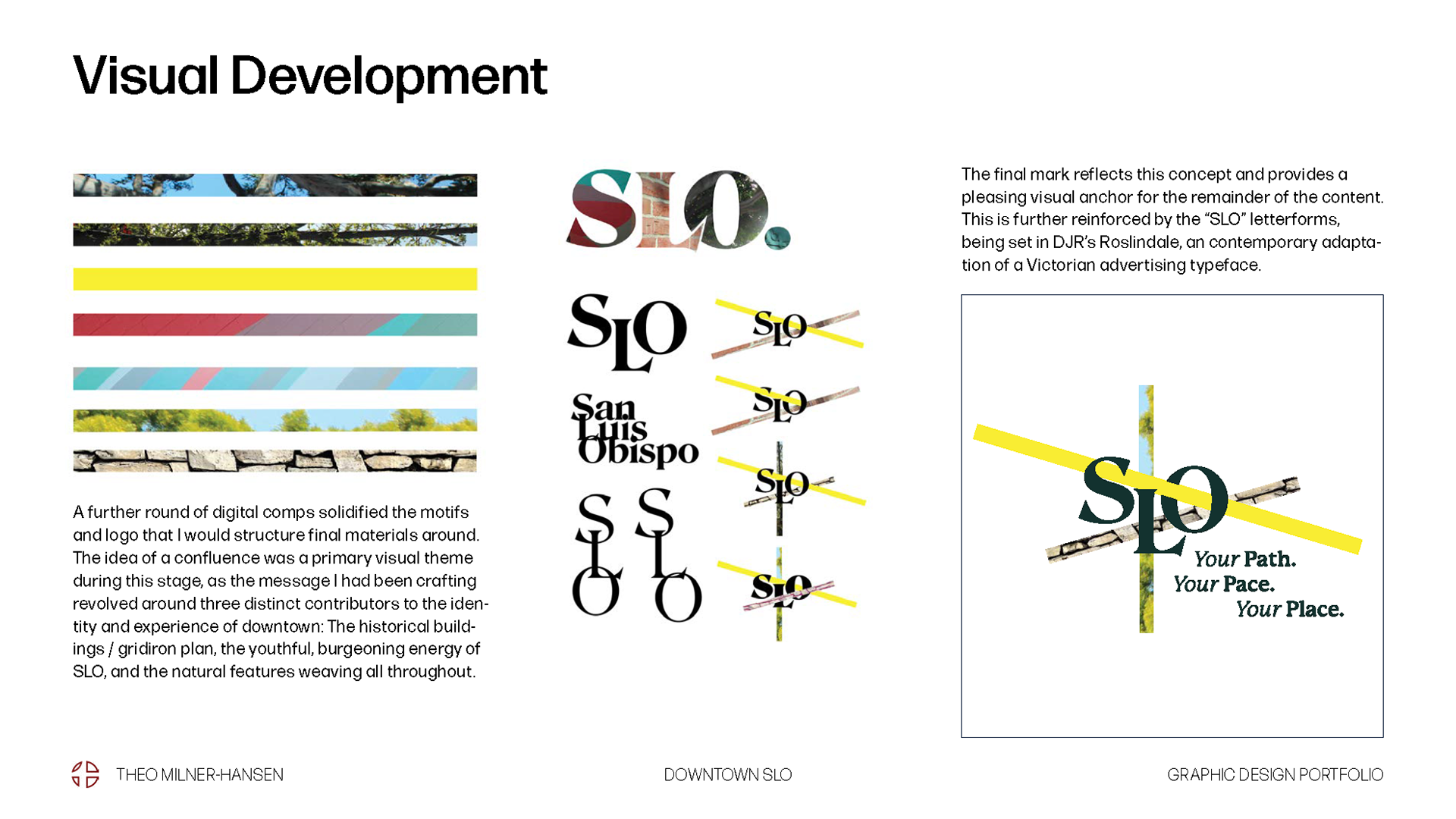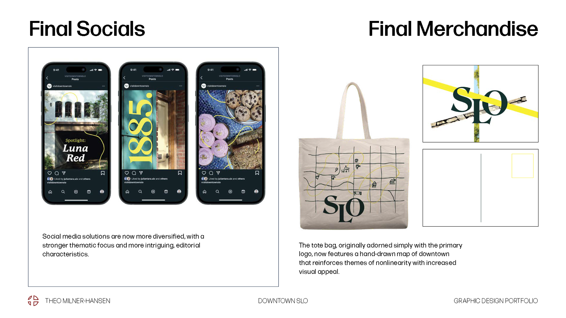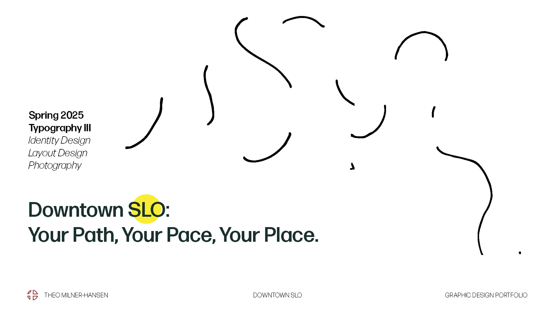 A complete identity system with applicaitons for Downtown San Luis Obispo, CA. Created as part of a typography course at Cal Poly, San Luis Obispo in 2025.